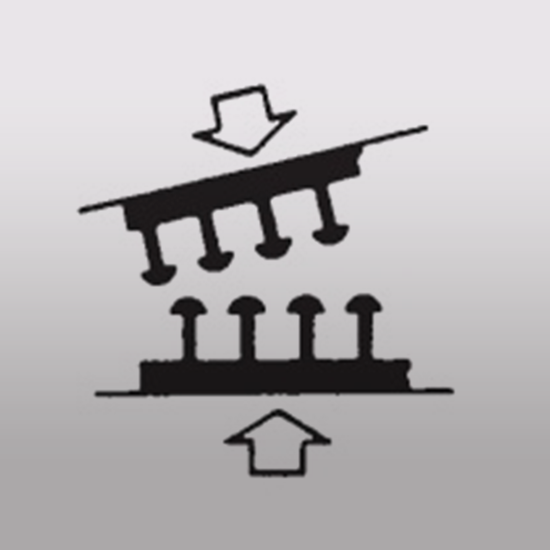 - Pilzförmige Köpfe verhaken sich ineinander, um den Druckverschluss zu befestigen