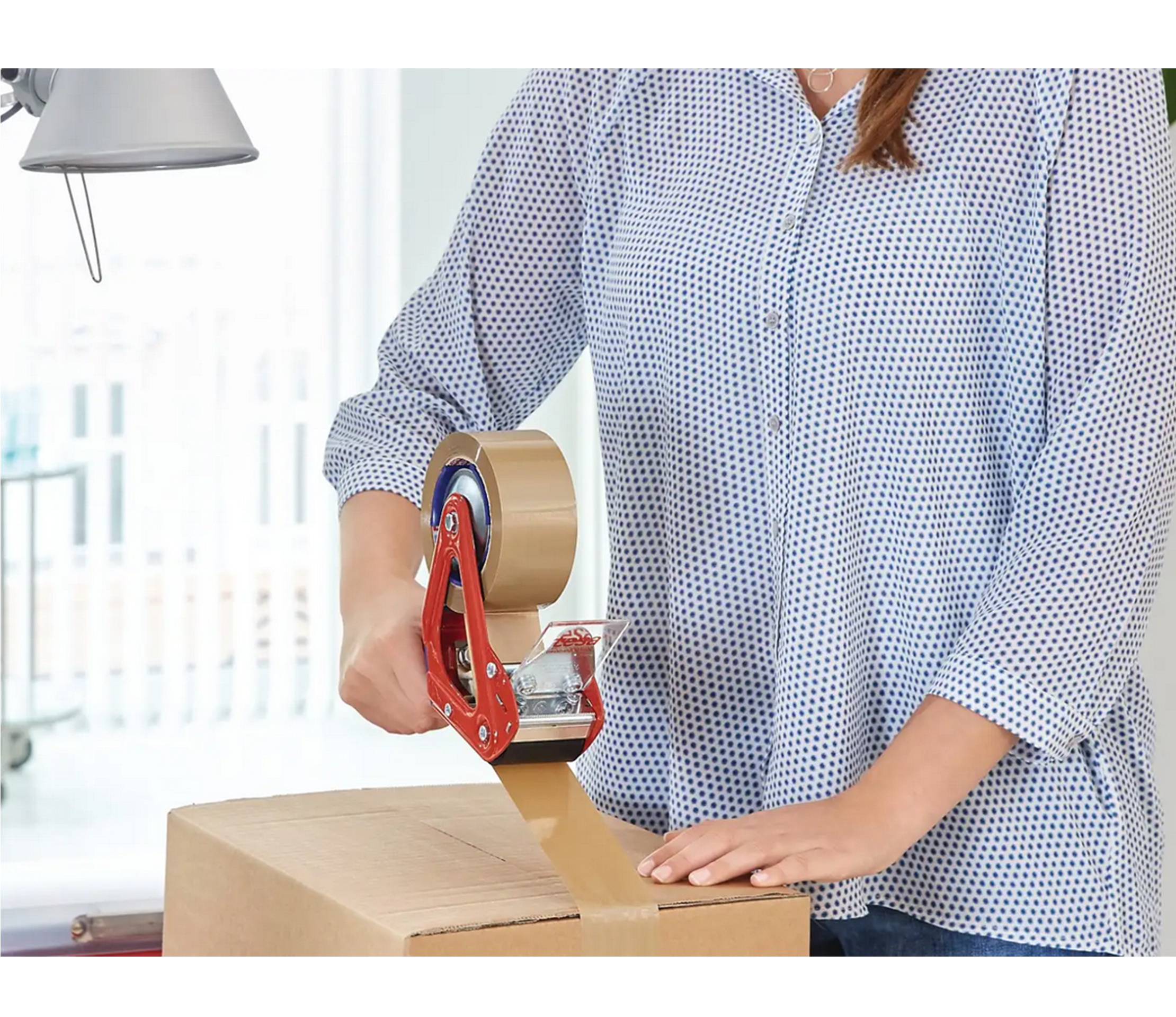 Der tesa® 6400 ist ein robuster und professioneller Handabroller mit verdecktem Messer und gummiertem Griff zur Verarbeitung von tesa® Verpackungsklebebändern bis 50 mm Breite und max. Rollendurchmesser von 140 mm.